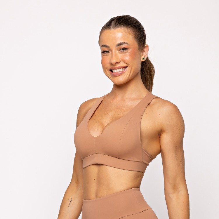 Modelagem anatômica que se adapta ao corpo. Poliamida premium com toque macio. Sustentação média, ideal para treinos leves e uso prolongado.