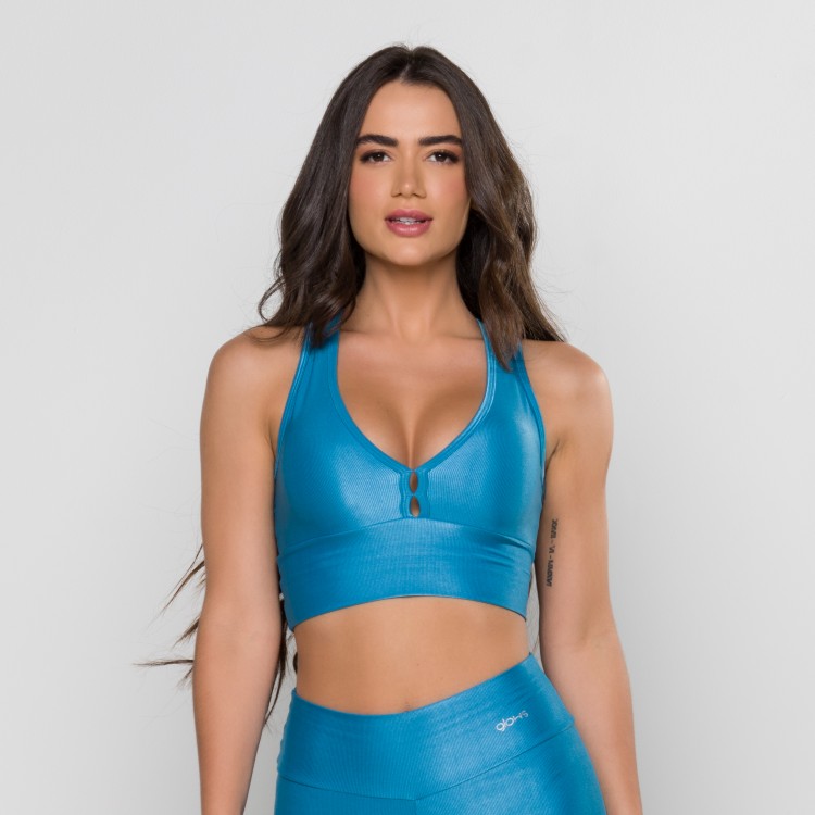 Top com modelagem perfeita, em tecido mini canelado e bojo removível. Possui alças mais largas de sustentação e costas estilo nadador, proporcionando maior conforto. Ideal para praticantes de atividades físicas com impacto.