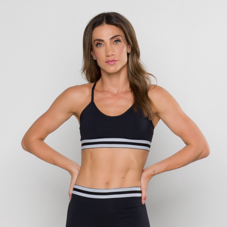 Top liso desenvolvido no suplex de poliamida, com elástico no sub busto. Possui bojo removível e costas modelo nadador com alça fina.