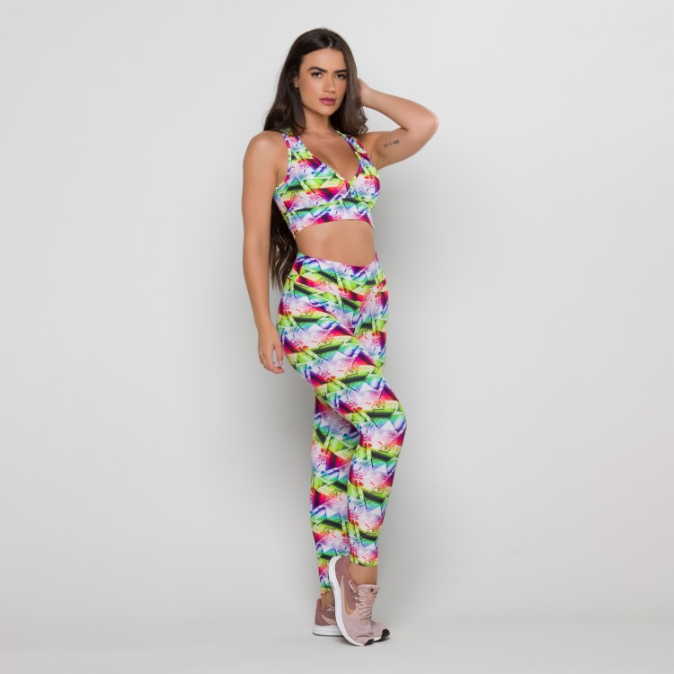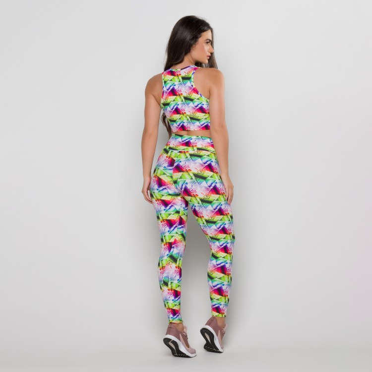Calça em tecido suplex de poliamida, com toque geladinho e estampa digital. Cós mais alto, para ainda mais conforto.
