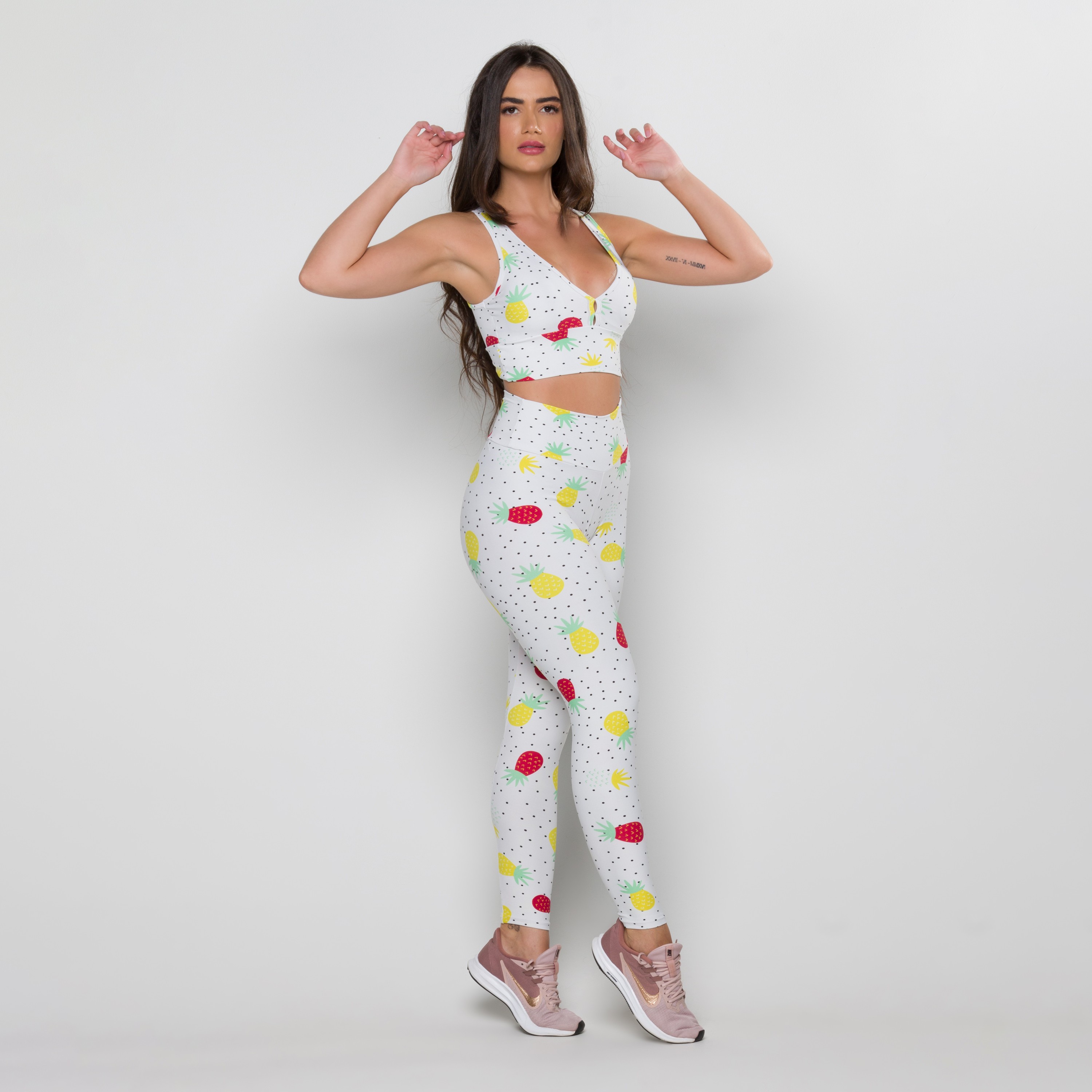 Calça em tecido suplex de poliamida, com toque geladinho e estampa digital. Cós mais alto, para ainda mais conforto.