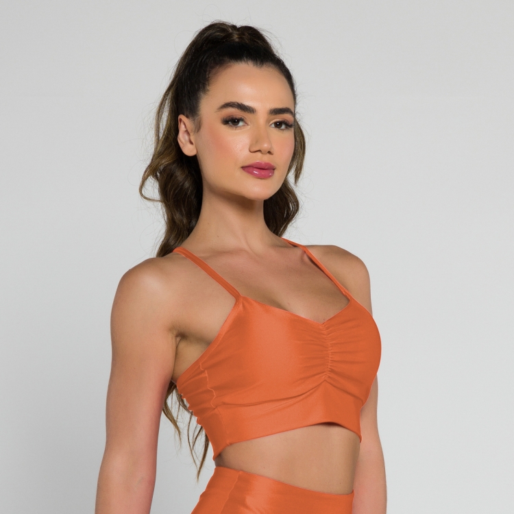 Top com modelagem perfeita, detalhes em franzido frontal e bojo removível. Tem como diferencial as alças que se cruzam nas costas. Fabricado em tecido nobre de fio de trilobal. Você vai se surpreender com a qualidade e o estilo.