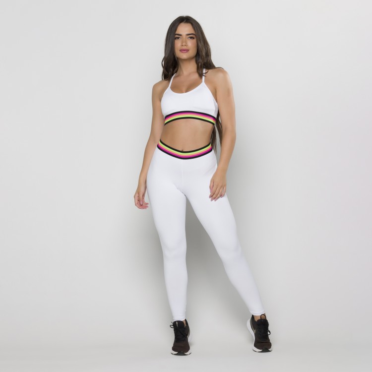 Calça Legging desenvolvida em Suplex de Poliamida e elástico aparente.