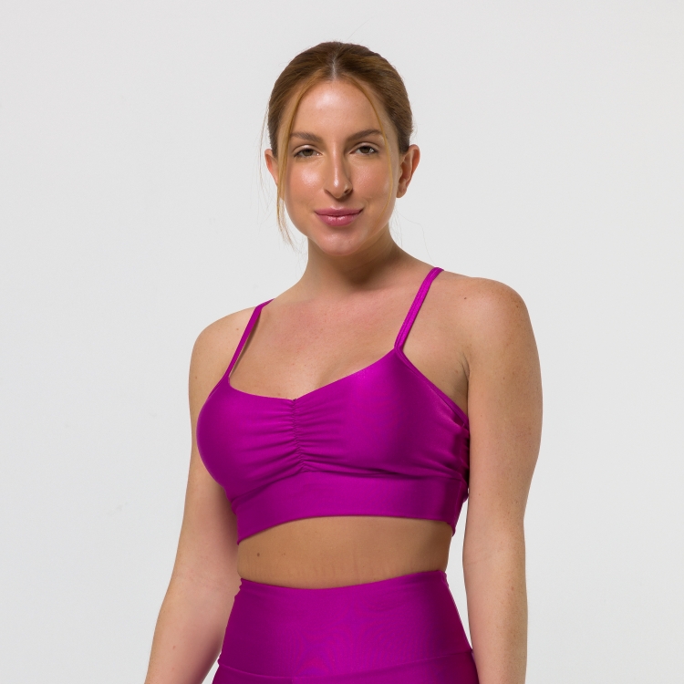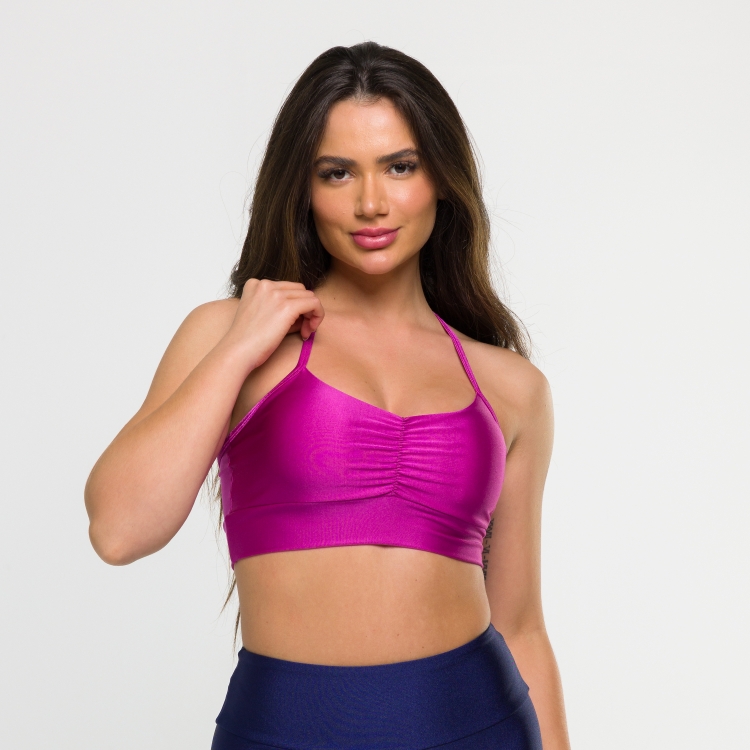 Top com modelagem perfeita, detalhes em franzido frontal e bojo removível. Tem como diferencial as alças que se cruzam nas costas. Fabricado em tecido nobre de fio de trilobal. Você vai se surpreender com a qualidade e o estilo.