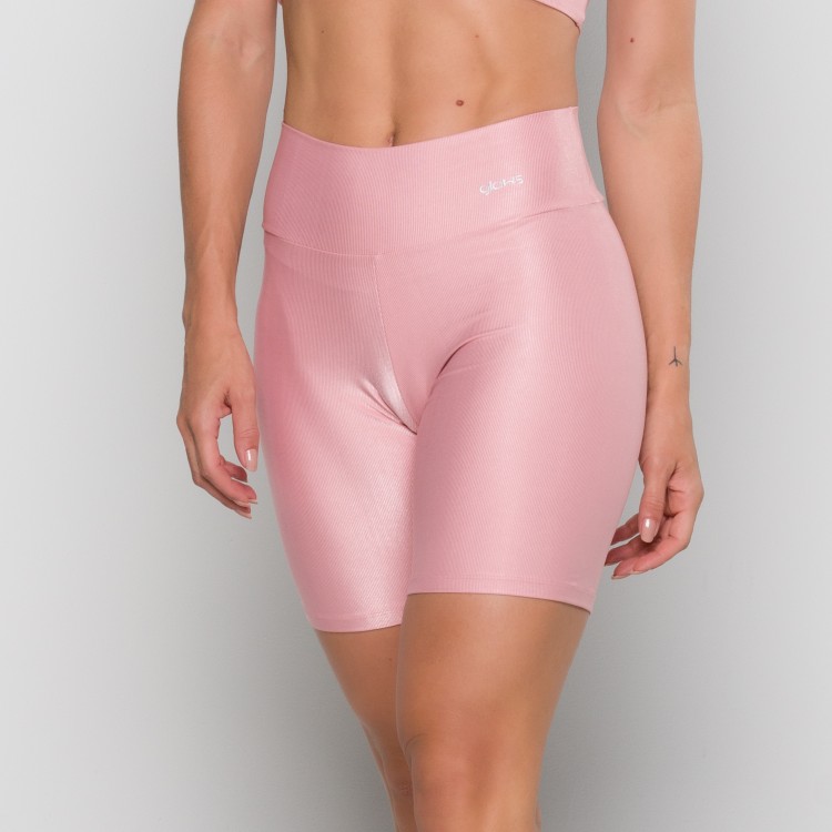 Short de comprimento médio, em tecido tecnológico de media compressão, e alta elasticidade. Textura canelada com brilho. Modelagem perfeita, cós aumentado que promove sustentação e não enrola, em tecido de poliamida.