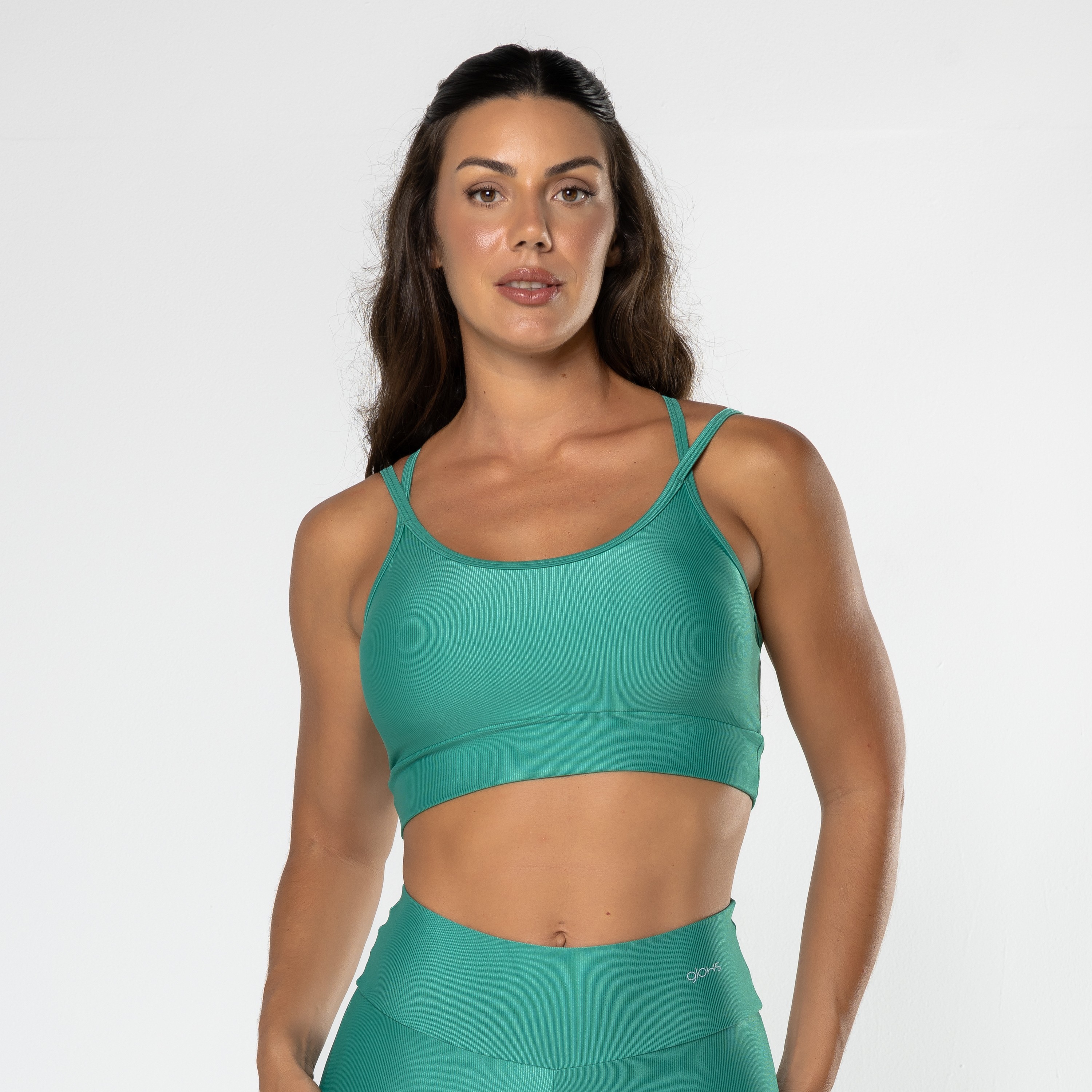 Top de alça dupla com efeito cruzado nas costas. O preferido das mulheres que optam por peças com menos decote. Possui cós largo, que proporciona mais conforto, e bojo removível.
