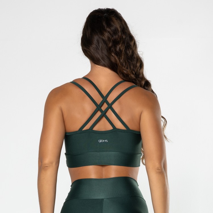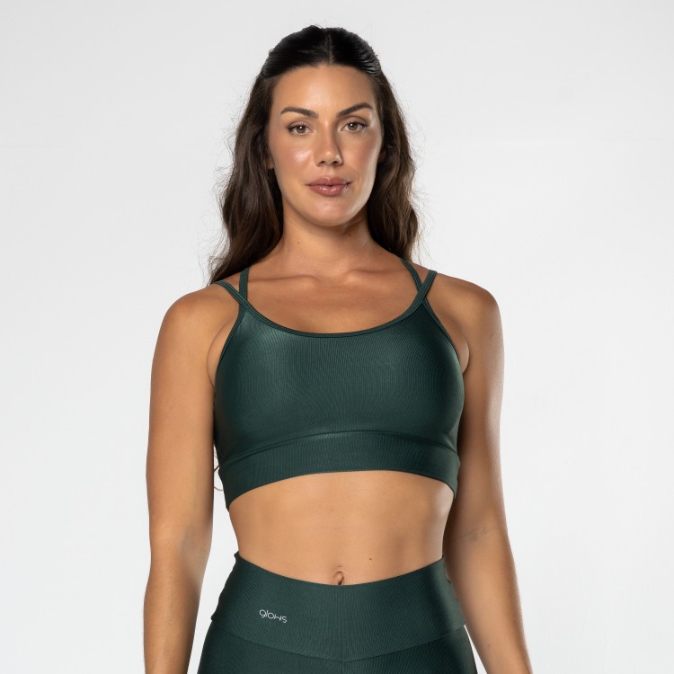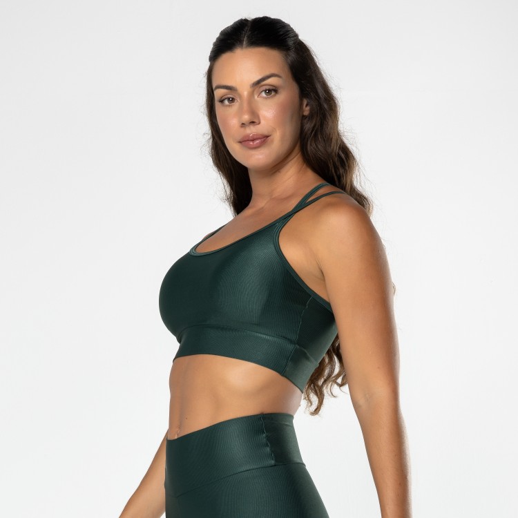 Top de alça dupla com efeito cruzado nas costas. O preferido das mulheres que optam por peças com menos decote. Possui cós largo, que proporciona mais conforto, e bojo removível.
