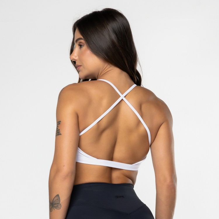 Nosso Top Gaia possui lindo desenho cruzado nas costas, e apesar de possuir alças finas, possui excelente sustentação pelas alças possuírem elástico embutido.