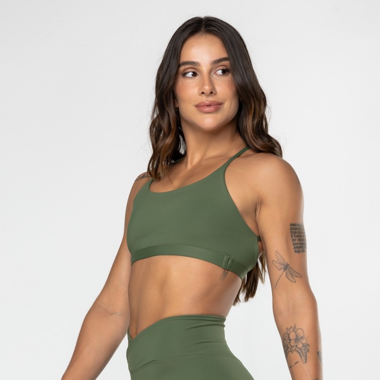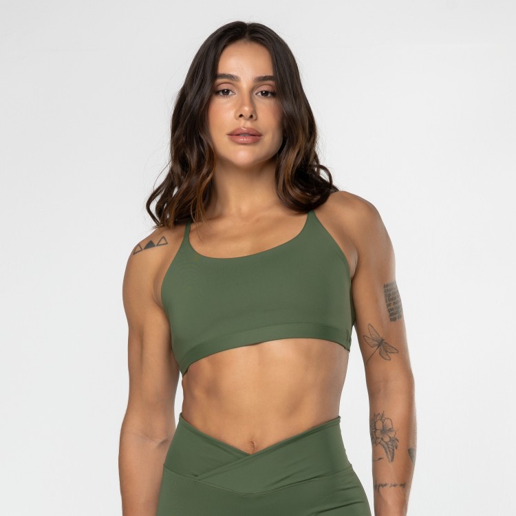 Nosso Top Gaia possui lindo desenho cruzado nas costas, e apesar de possuir alças finas, possui excelente sustentação pelas alças possuírem elástico embutido.