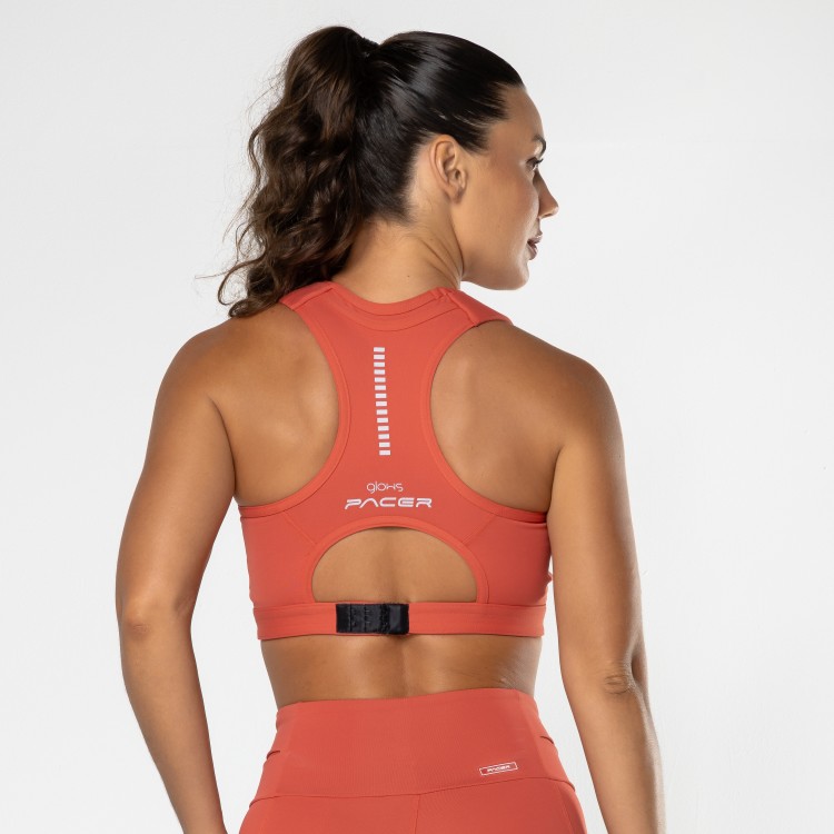 Mais que um top fitness, um acessório de corrida. Nosso top Pacer, foi desenvolvido especialmente para auxiliar a performance de atividades de impacto, como a corrida de longas distâncias. Possui alças largas e acolchoadas (grande diferencial), fecho traseiro em 4 opções de regulagem para melhor ajuste e conforto, tecido duplo e entrada para bojo, além do bolso estratégico na parte das costas. É sem dúvida um acessório que permite a melhora do desempenho na prática de corrida, ou qualquer outra atividade de impacto. Possui decalque refletivo para proteção em atividades noturnas.