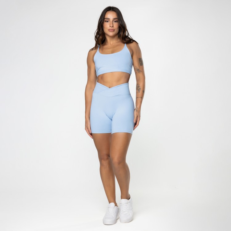 Short meia coxa desenvolvido em tecido premium de poliamida, com cós cruzado para afinar a cintura, sem