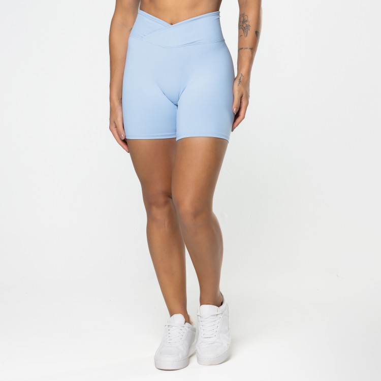 Short meia coxa desenvolvido em tecido premium de poliamida, com cós cruzado para afinar a cintura, sem