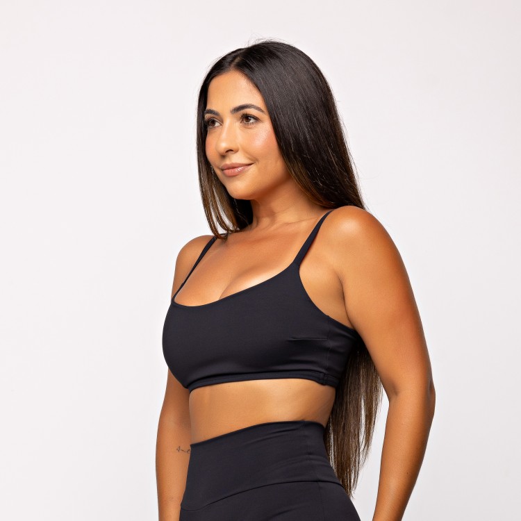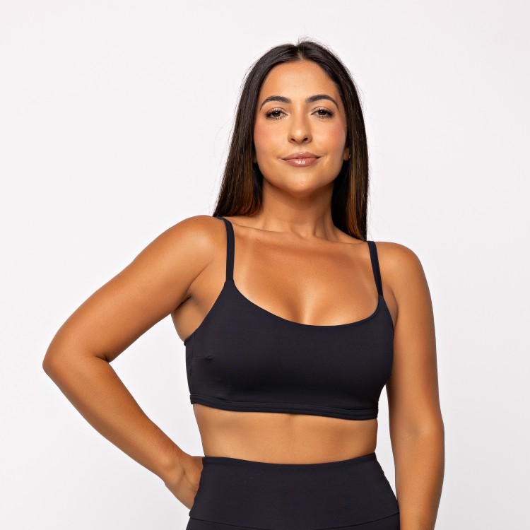 Alças reguláveis que se adaptam a diferentes biotipos. Poliamida premium com elasticidade confortável. Sustentação média.