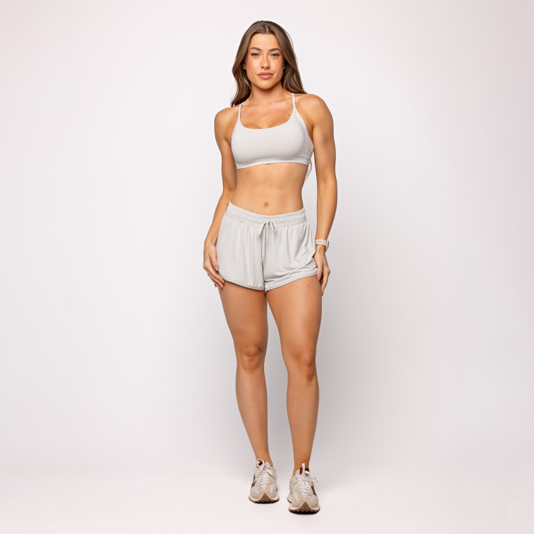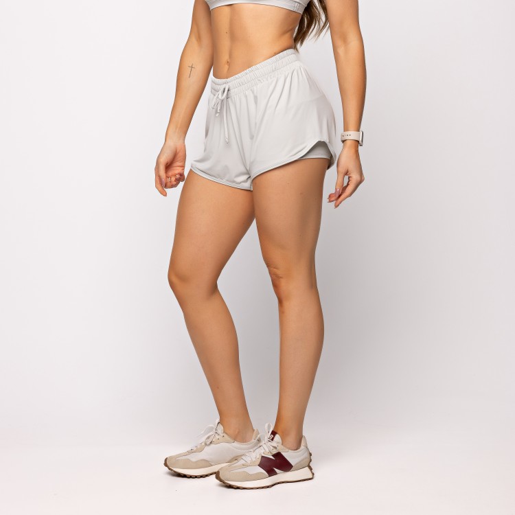 Modelagem solta com caimento fluido. Short interno com bolso. Microfibra respirável. Estilo casual wellness.