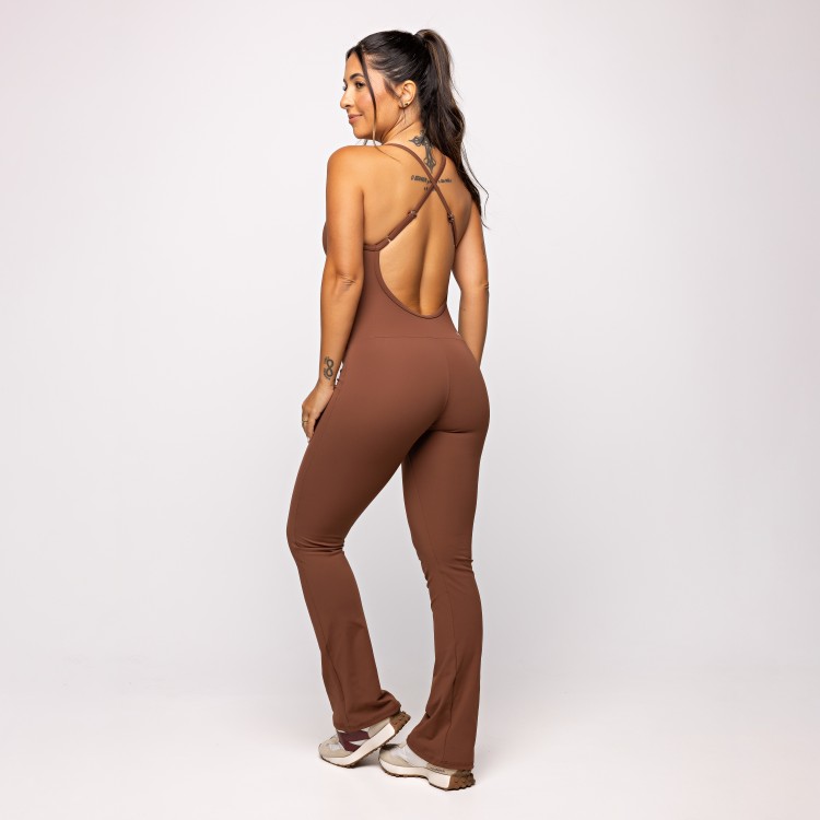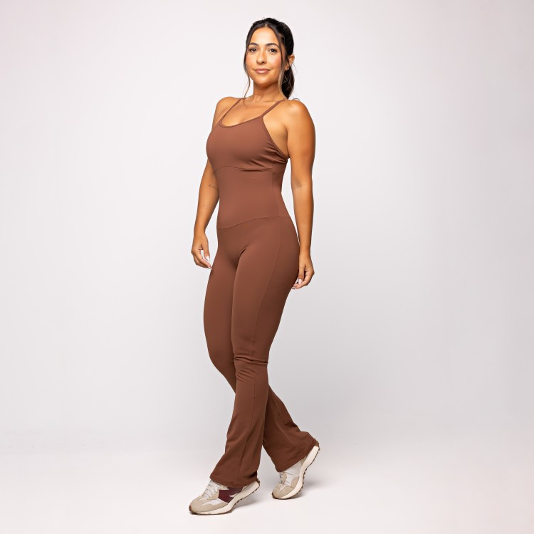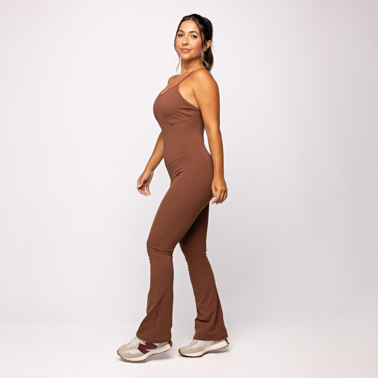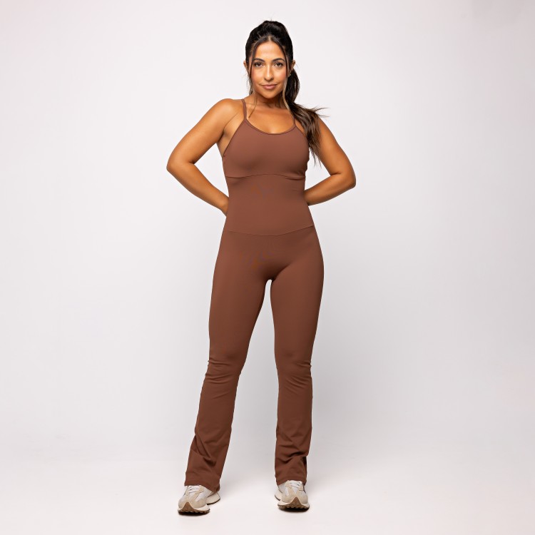 Macacão flare fitness feminino que alonga a silhueta e oferece conforto premium em uma peça única. Ideal para quem busca sofisticação, liberdade de movimento e estética wellness. Possui entrada para bojo, e alças reguláveis, para ainda mais conforto ã sua prática de equilíbrio e bem estar.