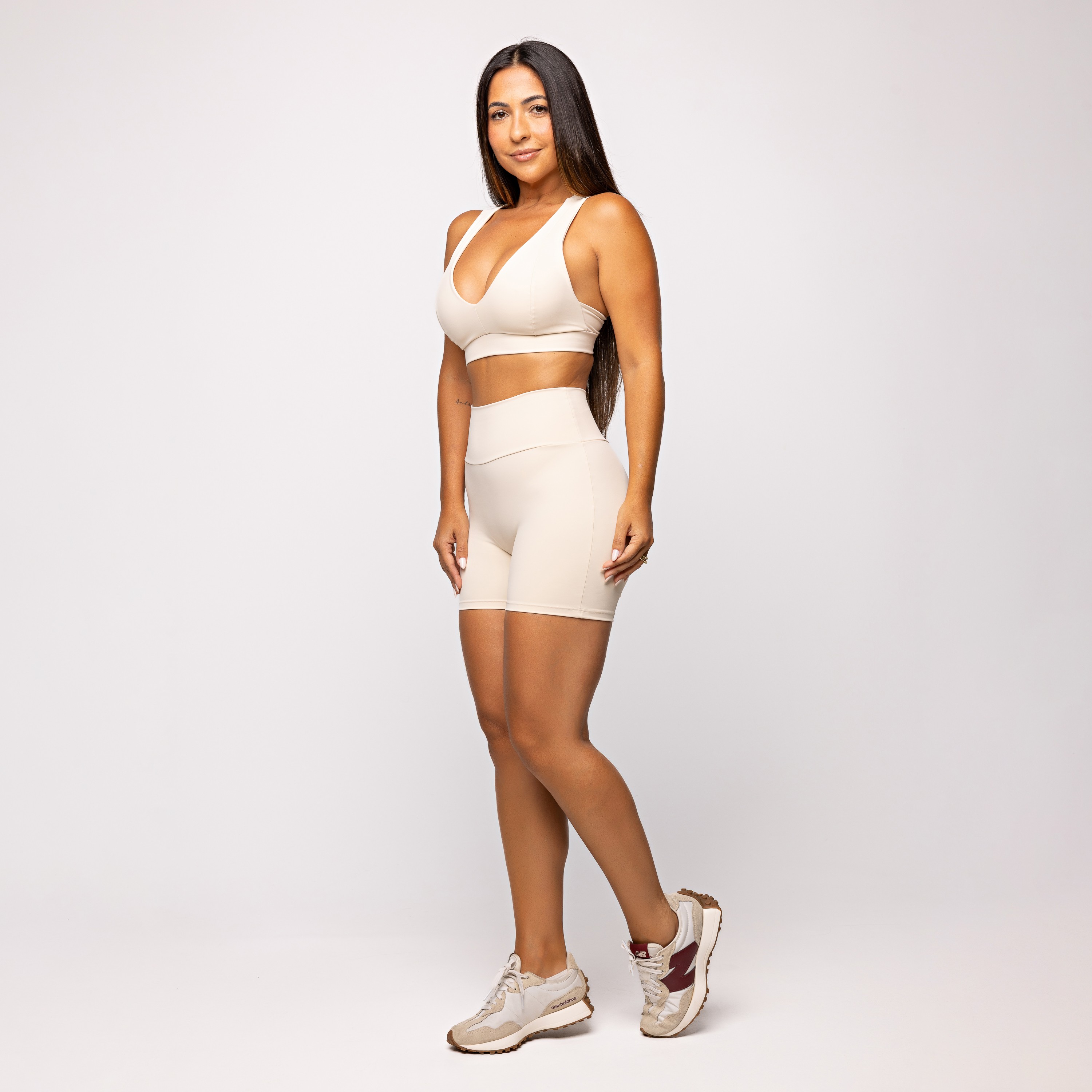 Modelagem anatômica que se adapta ao corpo. Poliamida premium com toque macio. Sustentação média, ideal para treinos leves e uso prolongado.