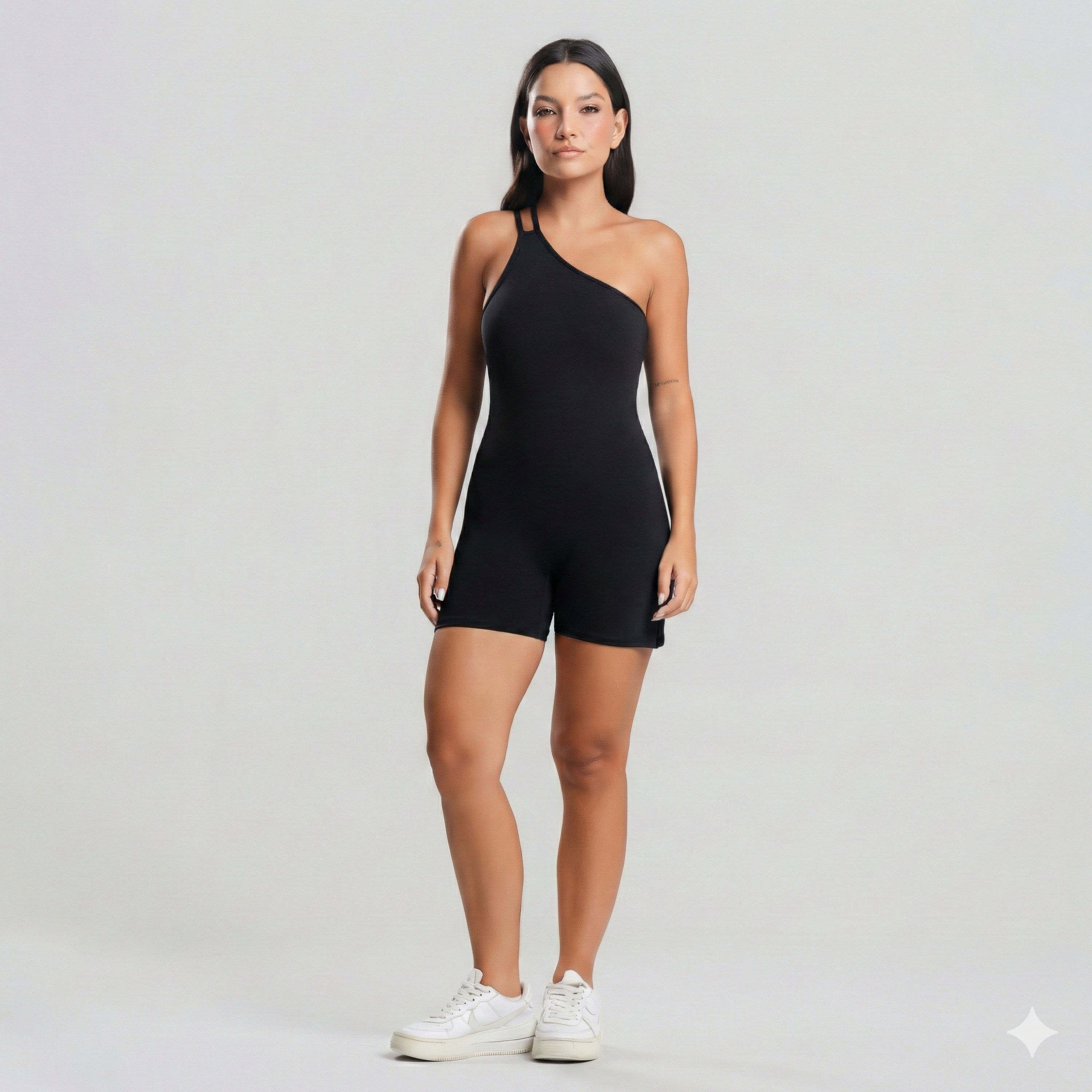 O comprimento foi pensado para não enrolar na coxa, acompanhando os movimentos com segurança e liberdade. Versátil e atemporal, o Macaquinho Fitness One transita com naturalidade entre o treino e o dia a dia, compondo looks athleisure com facilidade.