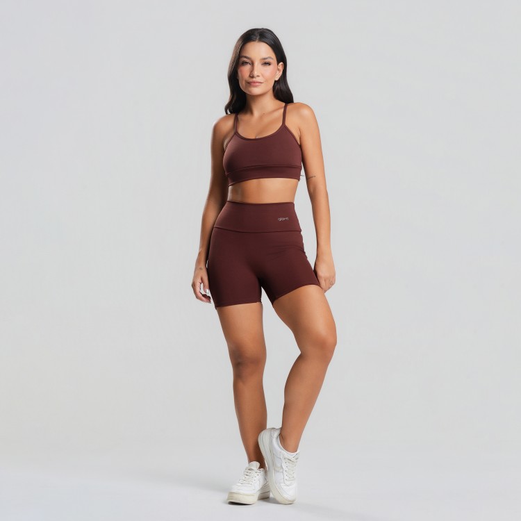 A modelagem básica e atemporal valoriza diferentes biotipos e torna o short uma peça-chave no guarda-roupa fitness.